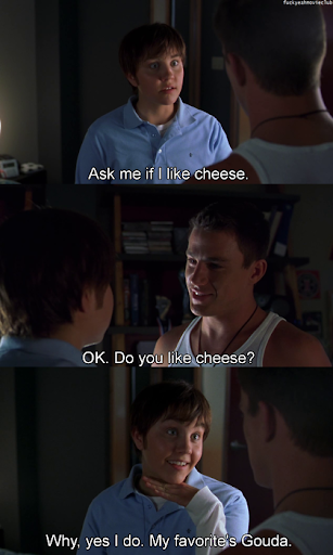 Viola's girl's soccer team gets cut, so she decides that while her musical bro Sebastian is touring in London, she'll take his place at Illyria High School, posing as a young lad. Her roommate is the super hot Channing Tatum, who spends most of his time with his shirt off? Or maybe I just imagine that he does. Hard to say.